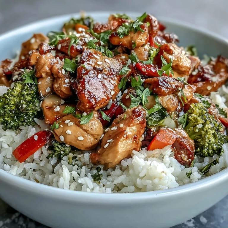 This bowl is highly versatile; you can substitute chicken with tofu or shrimp for a different protein option. Additionally, feel free to use any seasonal vegetables you have on hand, such as snap peas, zucchini, or fresh spinach, to keep the dish vibrant and varied.