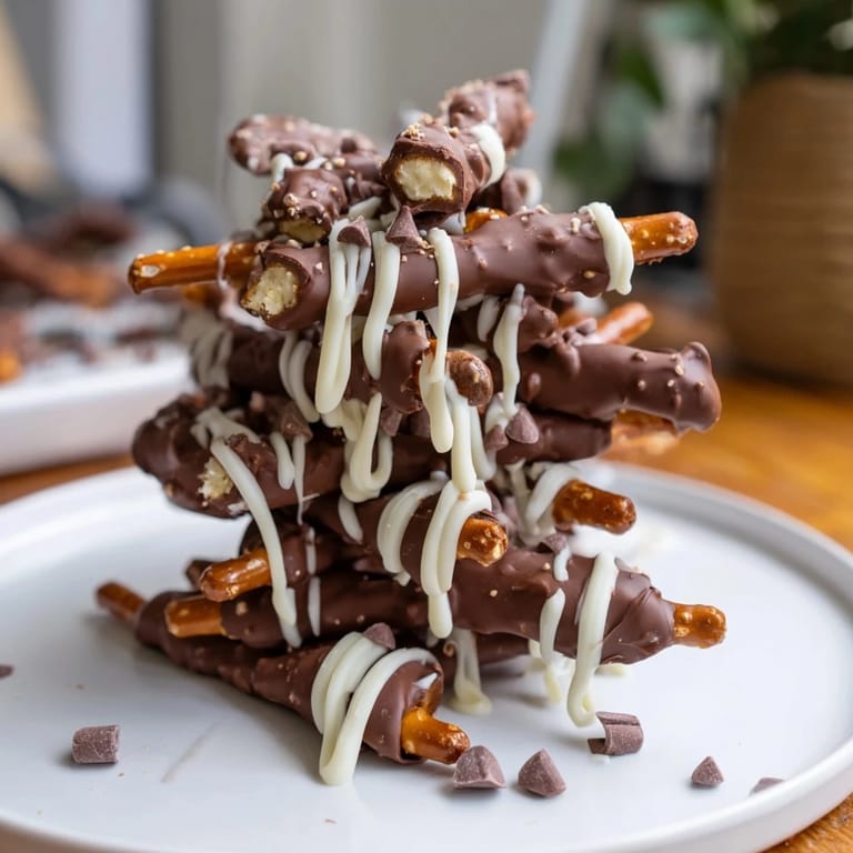 Save A fun, no-bake dessert featuring layers of crunchy pretzel sticks and smooth chocolate, perfect for parties or a quick sweet treat.
