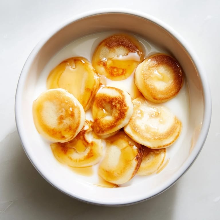 Save One morning, my daughter insisted on making these herself, and I watched her carefully squeeze the batter, flip each tiny pancake, and transfer them to a bowl like she was conducting an orchestra. When she poured the cold milk over them and took that first spoonful, her whole face lit up—not because the pancakes tasted amazing, but because she'd made them. That's the moment I realized this recipe is less about breakfast and more about creating small, delicious moments of joy.