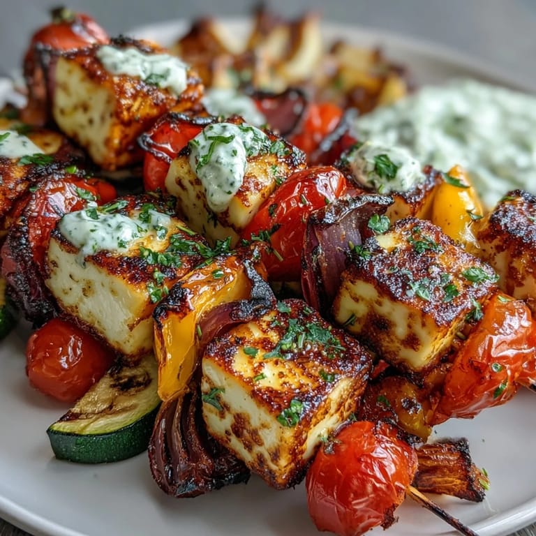 Save There's something about the sizzle of halloumi hitting a hot grill that makes summer feel official. I discovered these skewers by accident one July afternoon when I had a surplus of vegetables from the farmers market and a block of halloumi that needed rescuing from the back of my fridge. My partner suggested threading them together, and twenty minutes later we were standing on the patio with plates piled high, that squeaky cheese perfectly golden and the vegetables just beginning to blister at the edges.