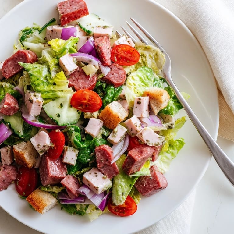Save My tiny apartment kitchen became my favorite place the summer I discovered how much better salads taste when everything is chopped into tiny, uniform pieces. I used to eat my salads as-is, but something about the texture transformation—the way salami and provolone and lettuce all occupy the same bite size—changed my whole relationship with chopped salads. This Italian deli version came together on a Tuesday when I had leftover rotisserie chicken and a lonely half-package of salami in the fridge.