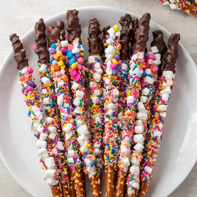 - 3. While the chocolate is still wet, roll each dipped rod in rainbow sprinkles, mini marshmallows, or candy-coated chocolates as desired.