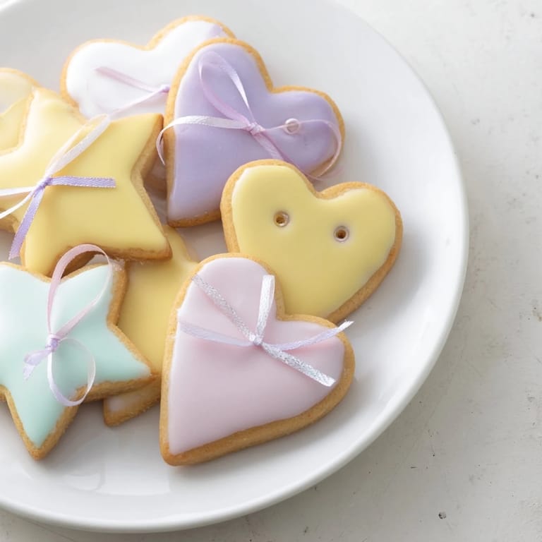 Mixing bowls, electric mixer or whisk, rolling pin, heart and star cookie cutters, baking sheet, parchment paper, wire rack.