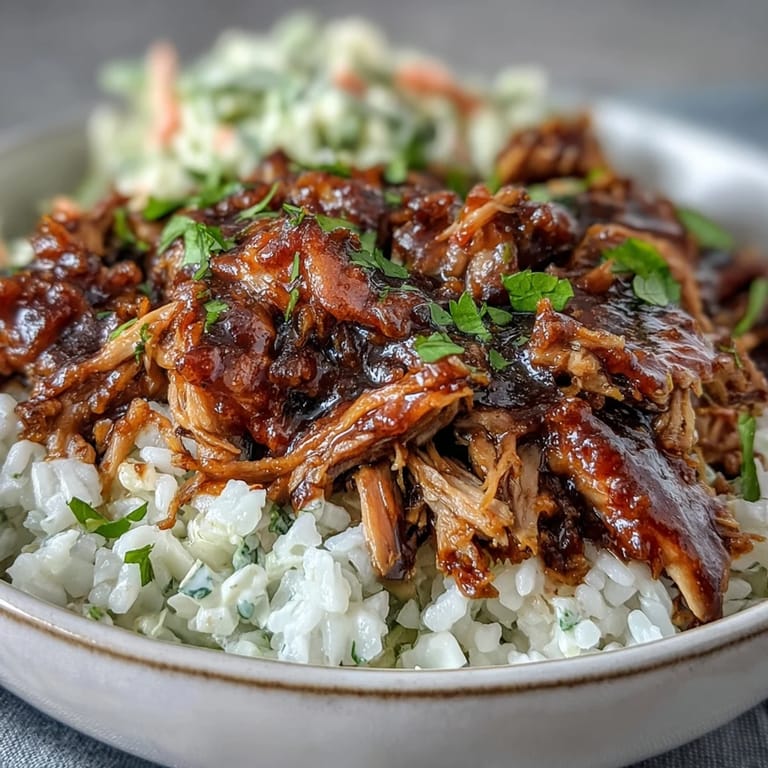 Save My neighbor handed me a container of pulled pork at a backyard gathering last summer, and I realized right then that the best meals are the ones that don't demand constant attention. Watching him assemble those bowls with rice, coleslaw, and a generous drizzle of sauce sparked something in my kitchen—a desire to master this low-effort, high-impact dish. Eight hours of slow cooking transforms a humble pork shoulder into something so tender it practically dissolves on your tongue, yet the whole process requires maybe ten minutes of actual hands-on work.