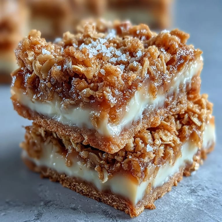 Save My neighbor knocked on the door one April morning holding a grocery bag stuffed with rhubarb stalks from her garden. She didn't want them to go to waste, and I had no idea what to do with that much tartness. I remembered my grandmother layering rhubarb with custard in a trifle dish, so I started there, then wondered what would happen if I turned it into something I could slice and pack for picnics. These bars were born from that experiment, and now every spring I wait for rhubarb season like it's a holiday.