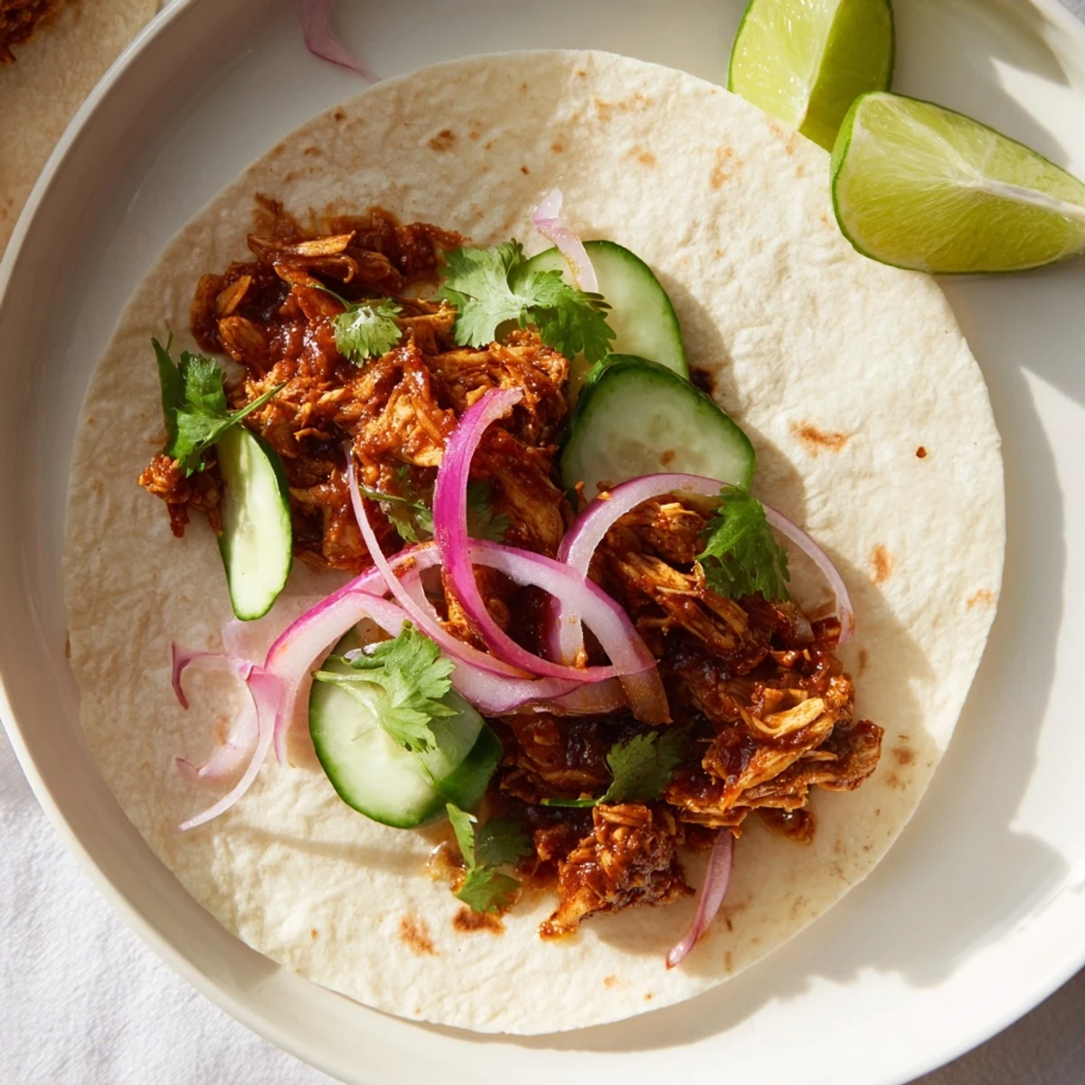 - For Serving: 6 small flour tortillas or corn tortillas, 1 red onion (thinly sliced), fresh cilantro leaves, 1 small cucumber (diced), lime wedges