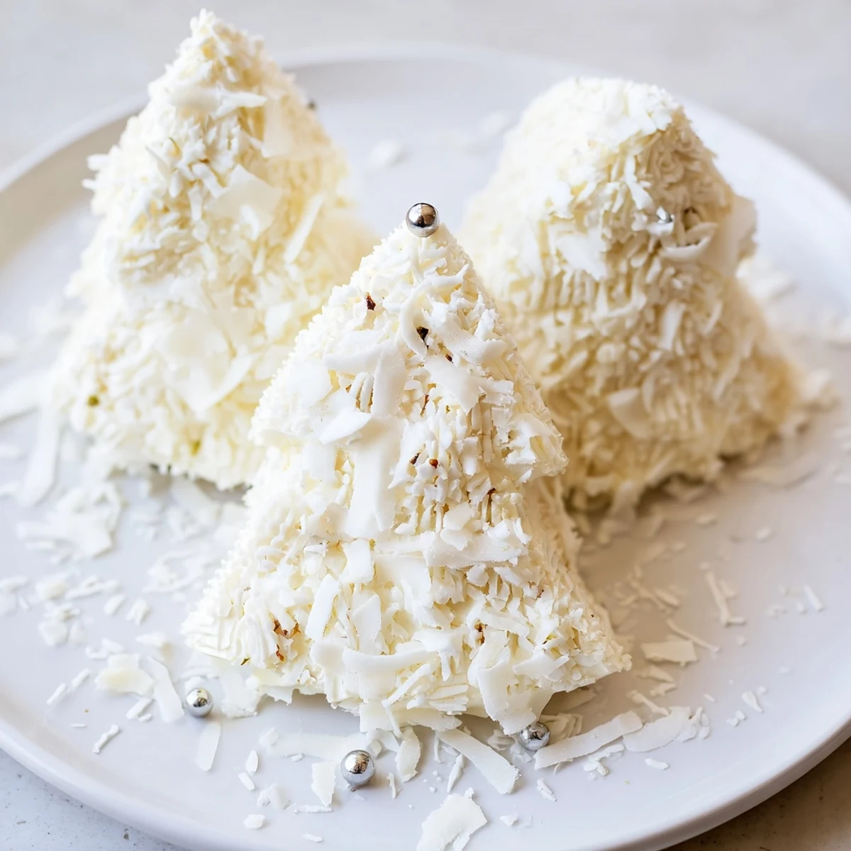Sprinkle shredded coconut for a snowy effect, add white chocolate shavings, and optionally use edible silver pearls or fresh rosemary sprigs for pine tree accents.